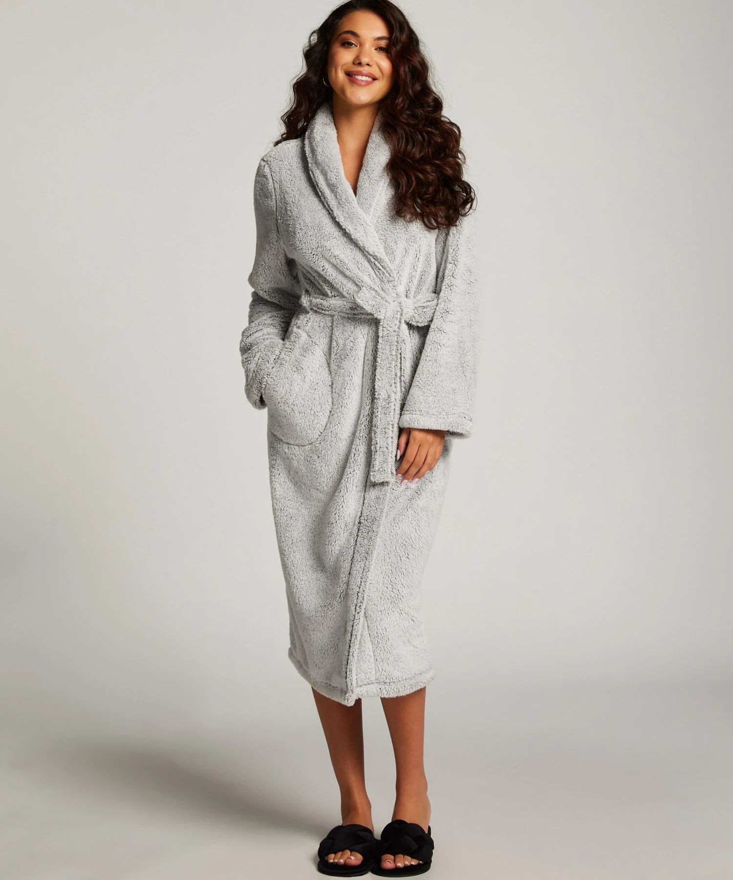 Ein herrlich weicher, langer Bademantel, , bis über die Knie. Ein Wickelmodell mit Eingrifftaschen.