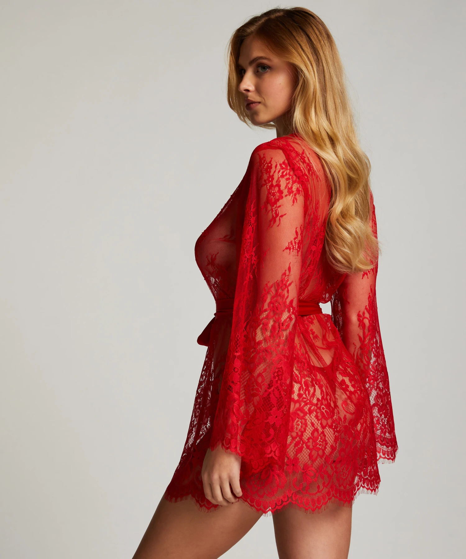 Sexy und feminin ist dieser Kimono! Er ist aus transparenter Spitze mit sehr schönen Satin details. Er lässt sich vorne zuknöpfen.