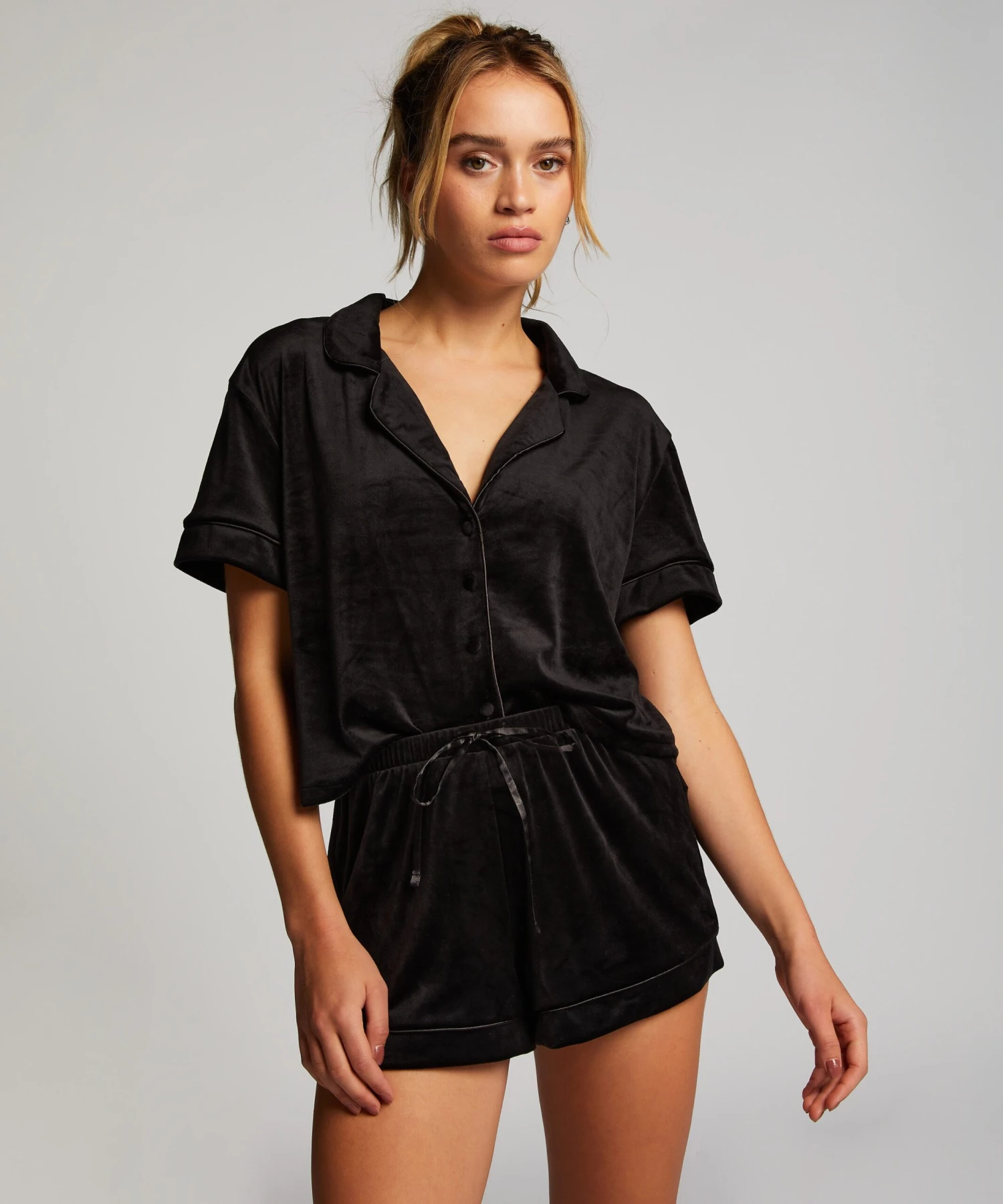 Mit diesen weichen Samtshorts sind Sie bereit für einen Abend auf der Couch. Die Shorts sind mit einem schönen Detail versehen! Mit dem passenden Oberteil kombinierbar.